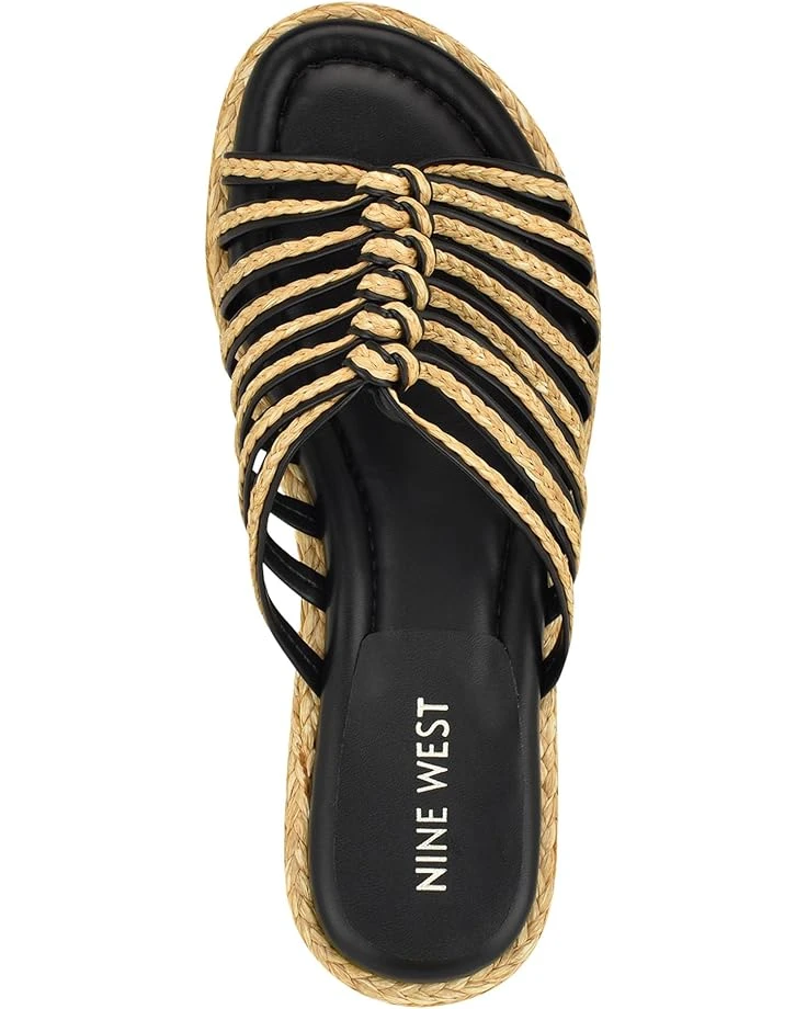 - The Nine West® Adila flats offer a chic and effortless style for your everyday ensemble. With a slip-on silhouette, these flats provide convenience and ease of wear. The strappy design with knot detailing adds a touch of sophistication, while the open round-shaped toe lends a modern and versatile look.