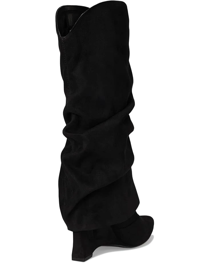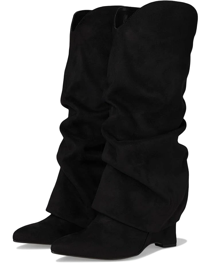 - Step out in effortless style in the chic Nine West® Amazin boots. These pull-on style boots offer a slouchy silhouette with a pointed toe silhouette and a sculptural wedge heel, crafted from a suede upper.