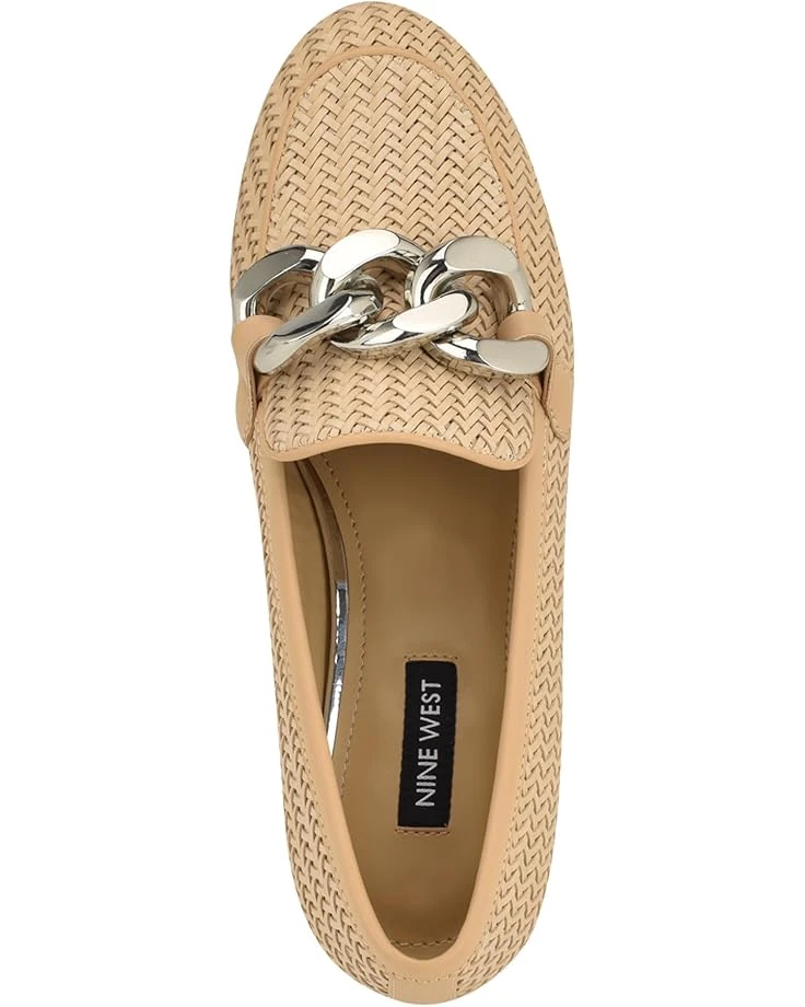 - Be chic and voguish wearing the Nine West® Aspyn 2. These round toe flats feature brand detailing on the footbed, slip-on construction, and polyurethane upper with chain-link detailing on the vamp.
