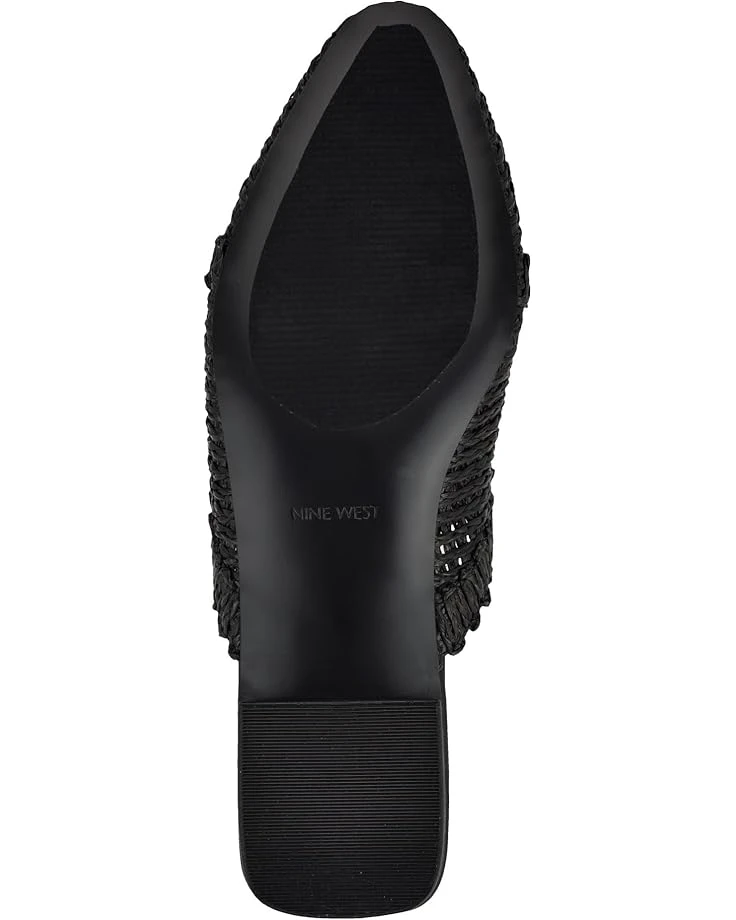 - Step into effortless elegance with Nine West® Cleigha mules. Designed with a slip-on silhouette for convenience, these mules feature a stylish pointed shape toe and intricate woven detailing for added flair. With a low heel, they offer a perfect blend of style and comfort for all-day wear.