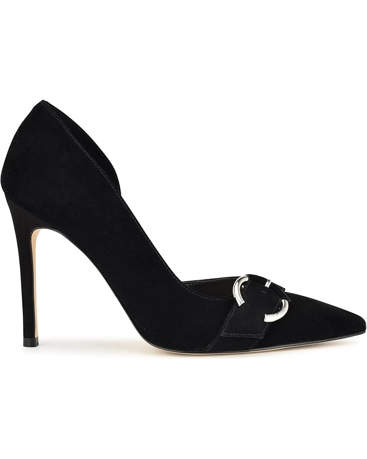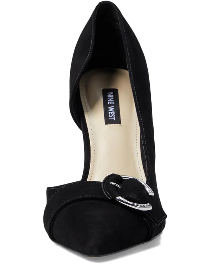 - Make a fabulous debut into the party by donning the gorgeous Nine West® Finite heels with point toe and a metallic buckle accent on the vamp to draw all the attention.