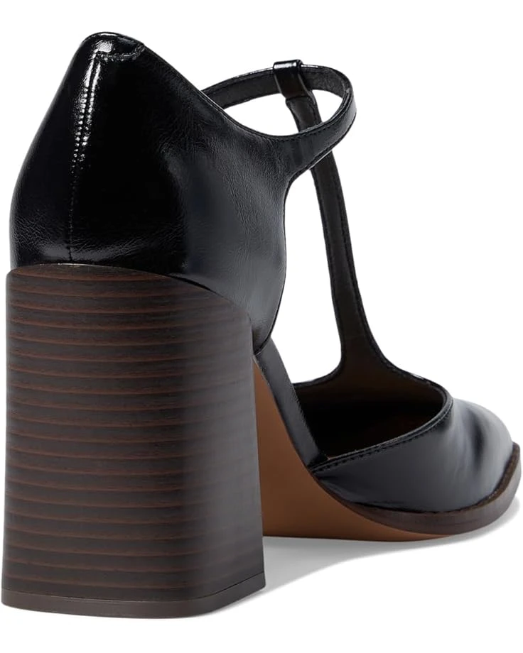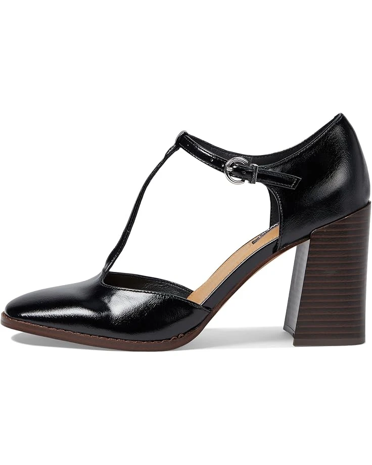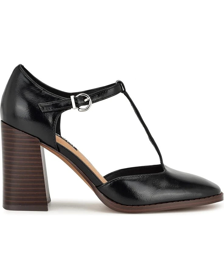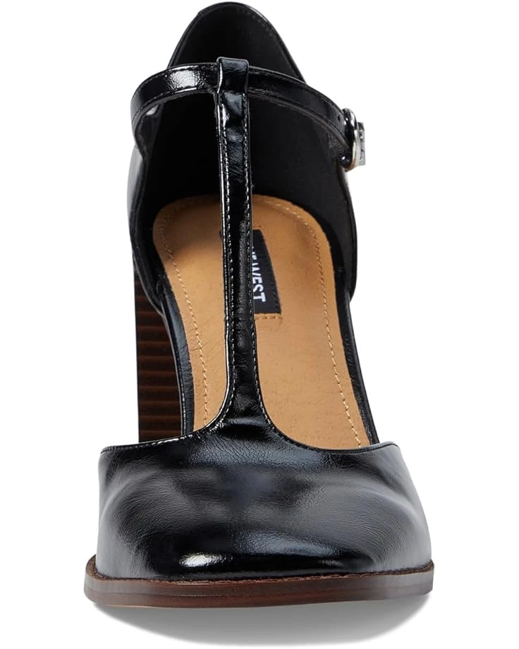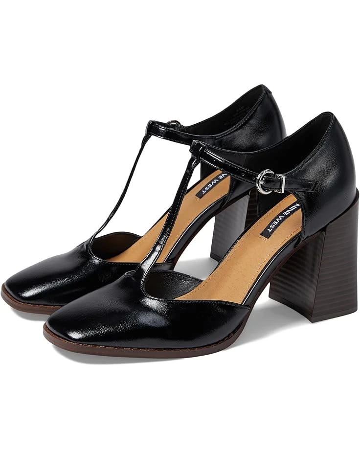 - The Nine West® Janky shoes are a perfect combination of style and comfort that makes them a perfect pick for your footwear collection. The faux patent synthetic leather upper with man-made lining and a comfortable footbed makes this pair of heels perfect for prolonged wear. They feature adjustable ankle strap, modern square toe and block heel for a classy look.