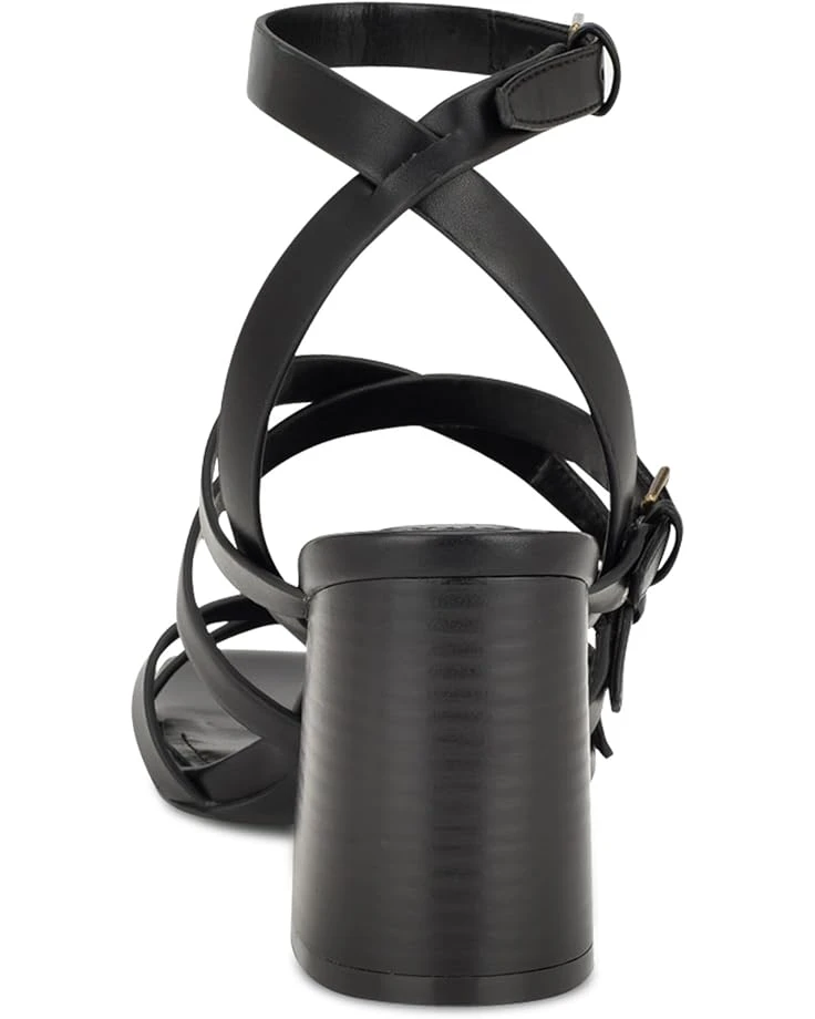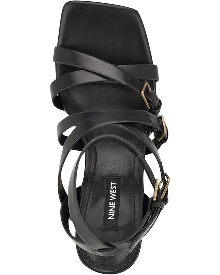 - Sleek and stylish, the Nine West® Karrly sandal is the perfect wardrobe staple. The slip-on style sandals have an open square toe design, block heels, fashionable adjustable straps, and an ankle strap with buckle closure. The fun sandals have a faux leather upper, man-made polyurethane lining, and a comfortable footbed for prolonged wear.