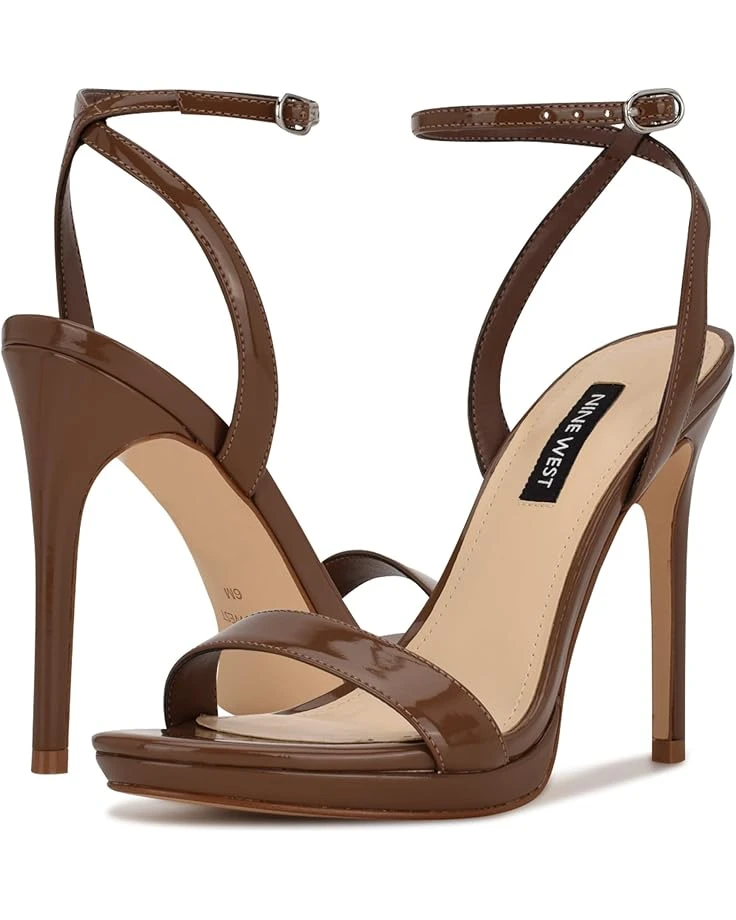 - Walk in style and comfort by wearing the Nine West® Loola. The sky-high stiletto heels have an open-toe style with an ultra-skinny ankle strap and thin toe strap. The buckle closure ensures a secure fit while the faux patent leather upper, man-made lining, and comfortable footbed adds comfort for all-day wear.