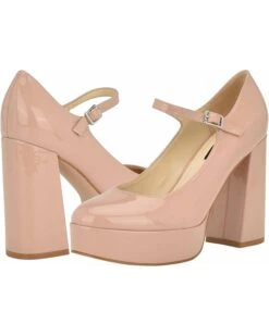 - Elevate your footwear collection with the classy Nine West® Pretz. Crafted from leather upper, this pair of pumps features block heel, almond toe design, and adjustable mary-jane strap with buckled closure.