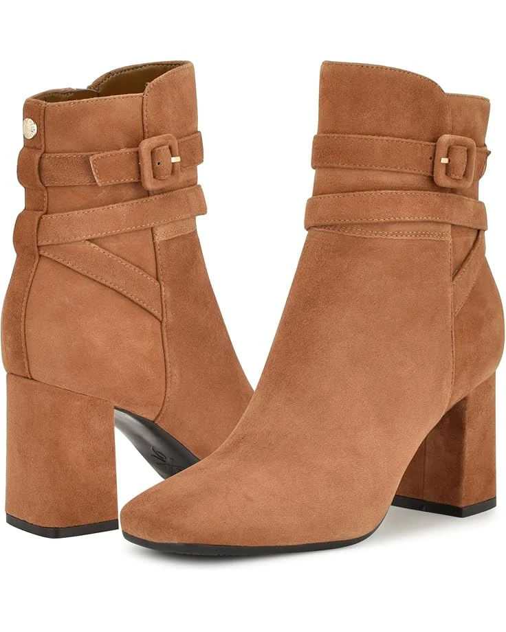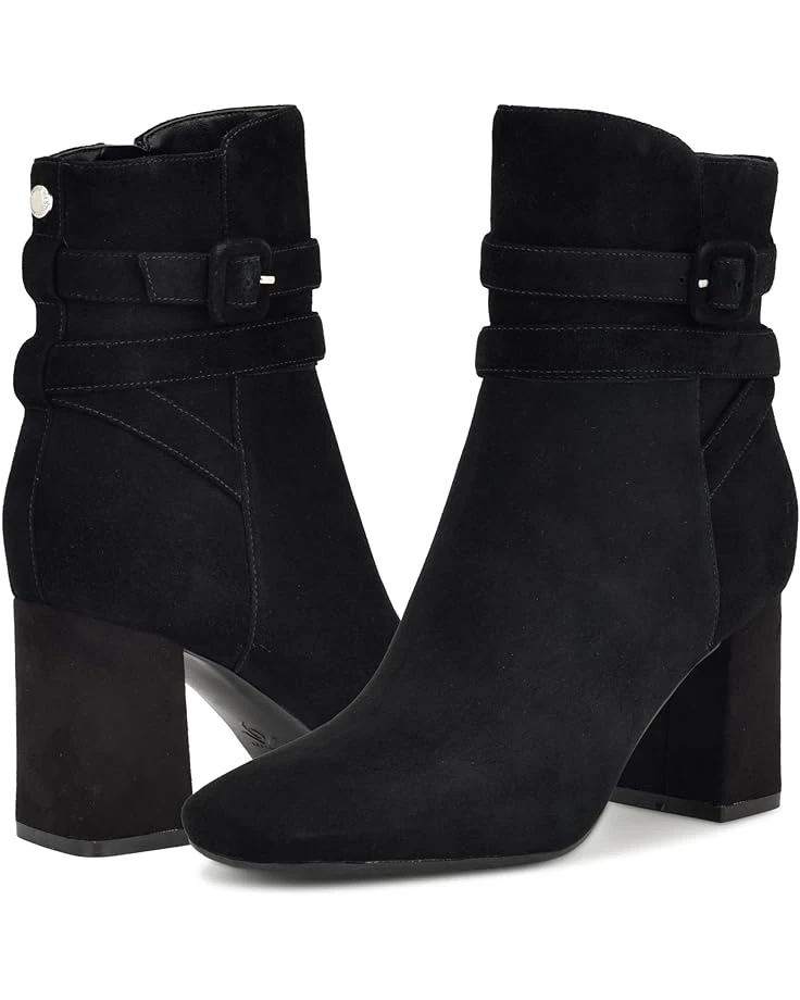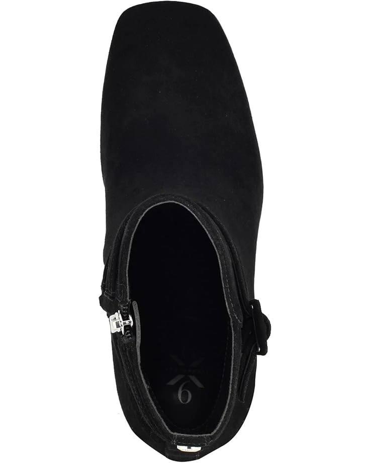- Step into sophistication wearing the Nine West® Quena 9X9. Crafted from suede upper, this pair of mid-calf boots features heel protecting memory foam and a footbed that adapts to each step you take. Plus, it offers a modern square toe and stacked block heel that is sure to impress. It has zippered side closure with buckle detailing for easy on and off.