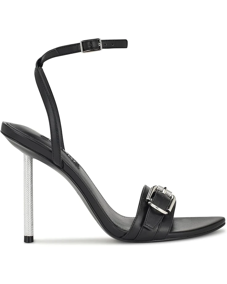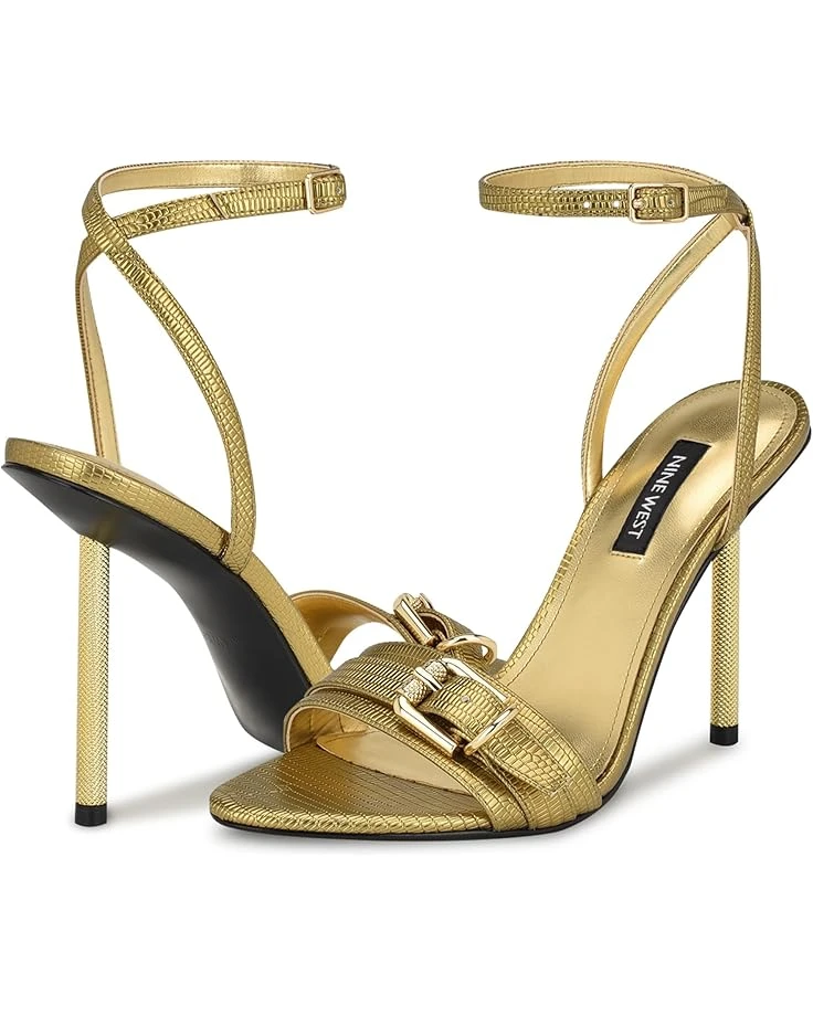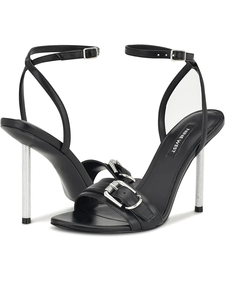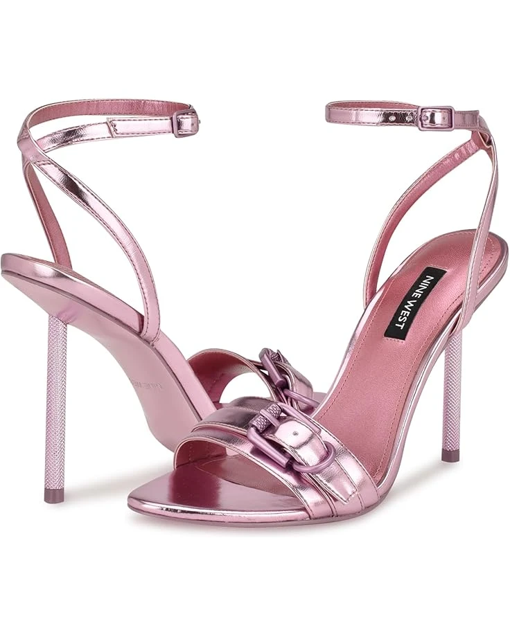 - Make a statement with Nine West® Rommie sandals, epitomizing elegance and modernity. These sandals boast a high stiletto heel, adding height and sophistication to your ensemble. The belt buckle strap on the upper offers a touch of chic detail and ensures a secure fit. With a modern almond-shaped toe, they exude contemporary style and versatility.