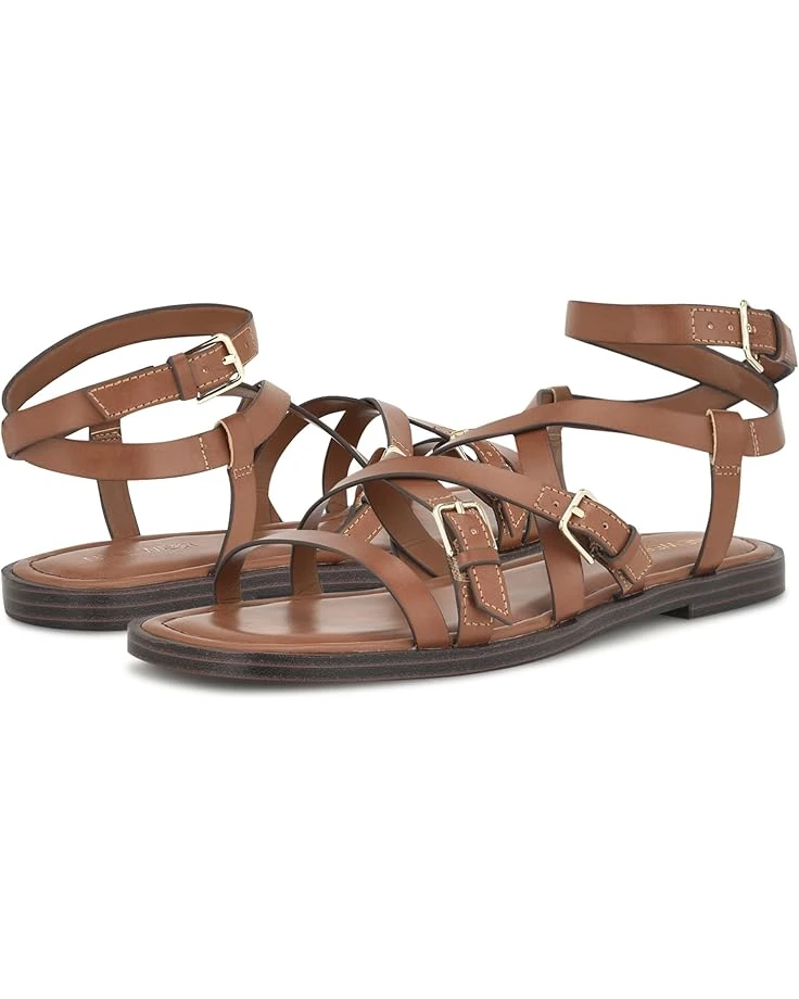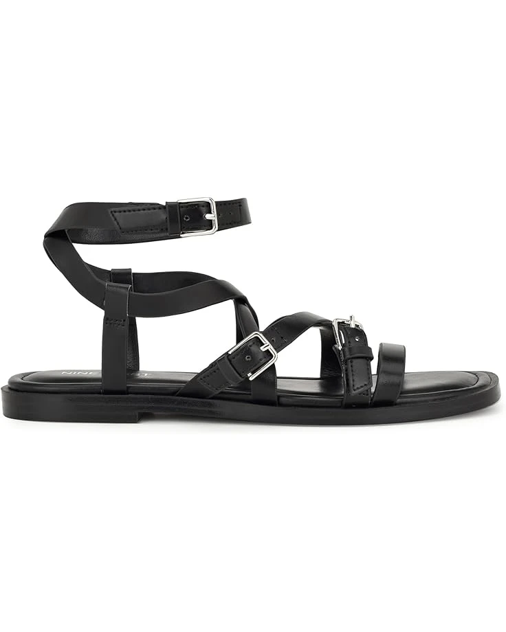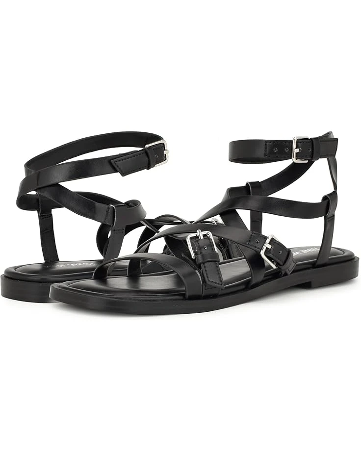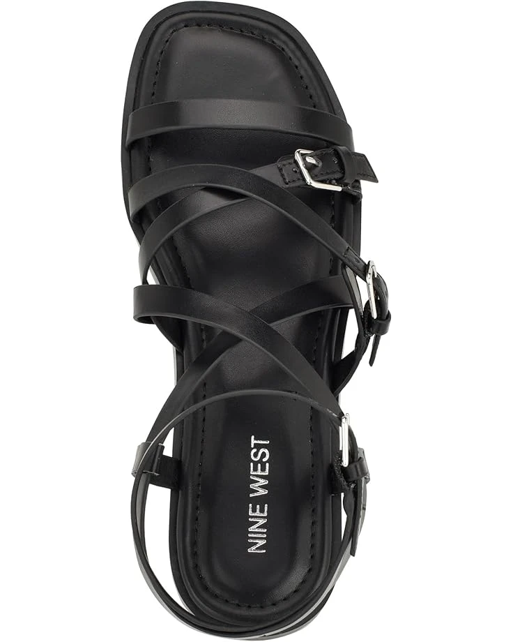 - Whether you are navigating the town or stepping into a casual gathering, the Nine West® Rulen Flats perfectly enable you to embrace your fashion-forward sensibility along with your desire for all-day comfort. Framed in a modern open square toe silhouette with a strappy faux leather upper, the shoes come secured with triple adjustable buckle strap closures.