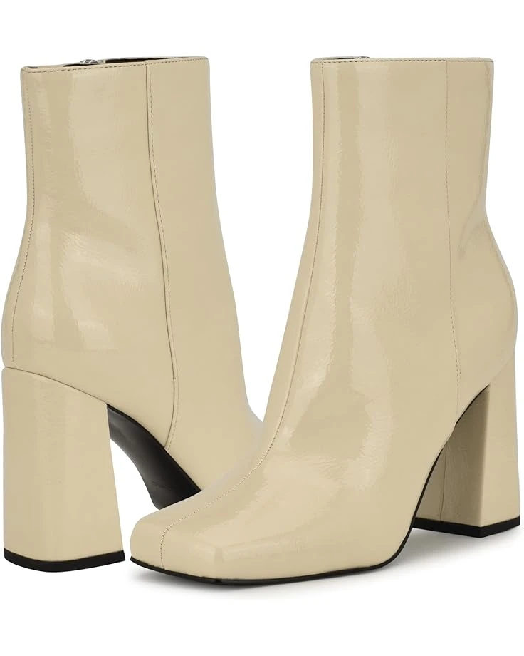 - The Nine West® Spice heels look stylish in appeal and effortlessly elevate your fashion statment. These come with a glossy leather upper, textile or man-made lining, and comfortable footbed. The heels are exquisitely crafted with a modern squared toe shape, side zipper closure for easy adjustability, and a high block heel.