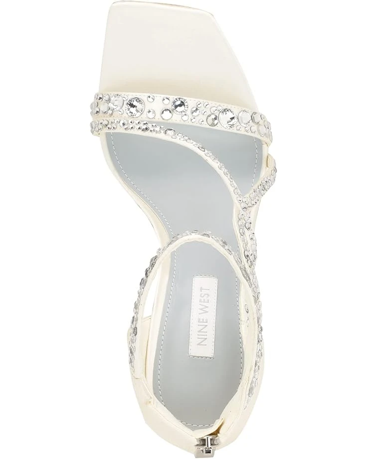 - Beaded embellishment on the vamp, foot, and ankle strap.