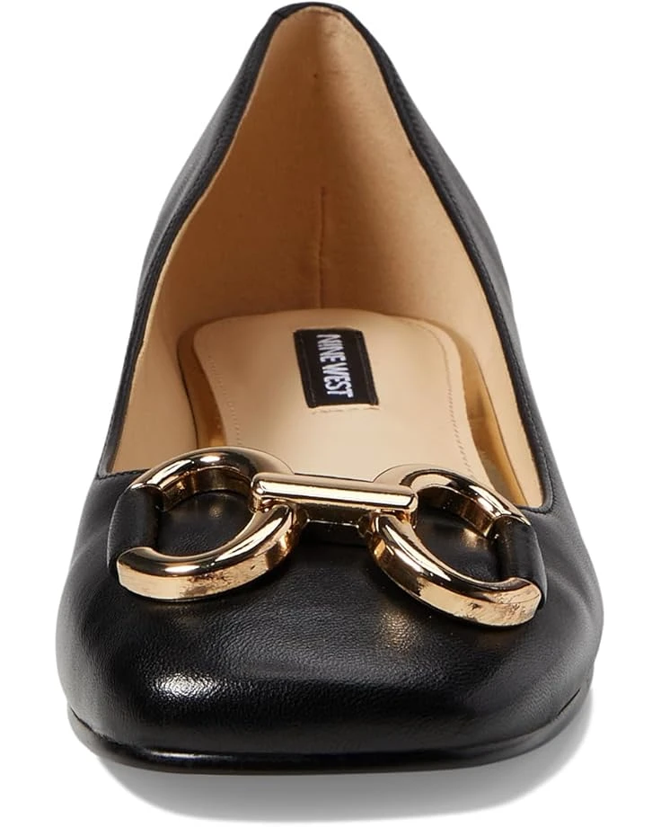 - Slip into style and comfort by wearing the Nine West® Works. The statement slip-on style footwear has a square toe design with a low block heel and a horsebit detail on the suede leather upper for a classy look. The pumps have man-made lining and comfortable footbed that makes them perfect for prolonged wear.