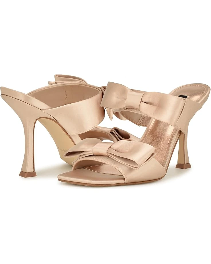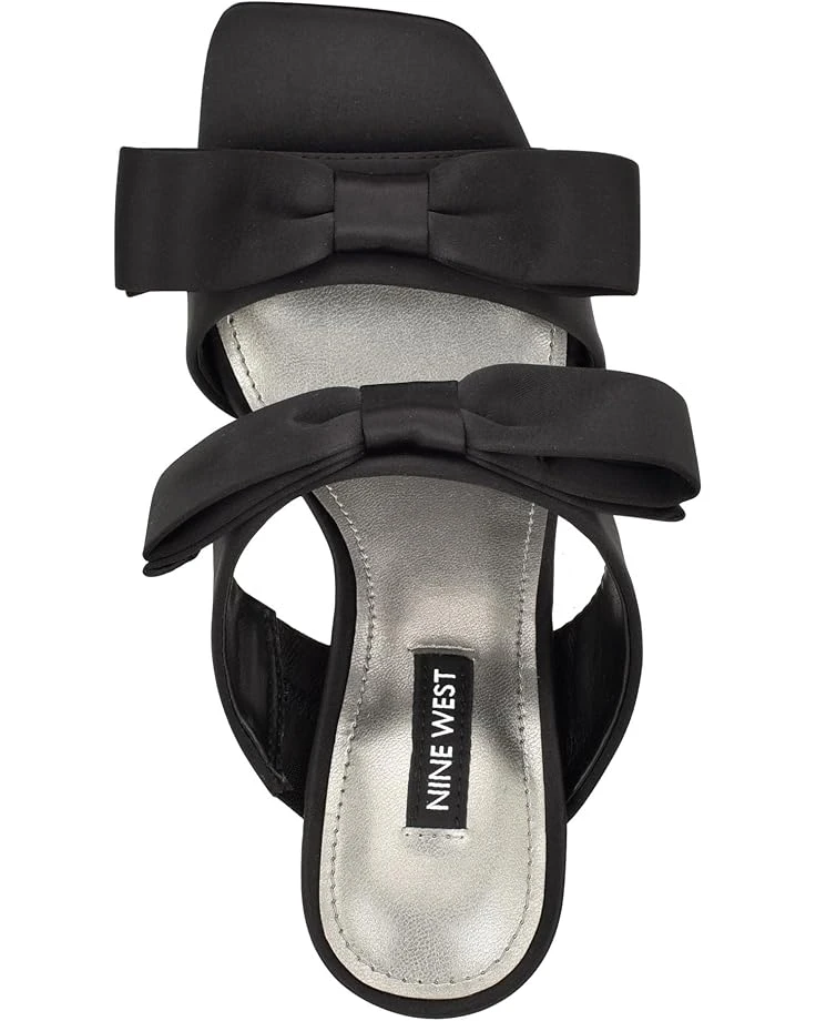 - Throw a standout appeal as you strut wearing the Nine West® Yoloh Sandals. The slip-on footwear features satin upper construction with bow accentuation and open square toe silhouette.